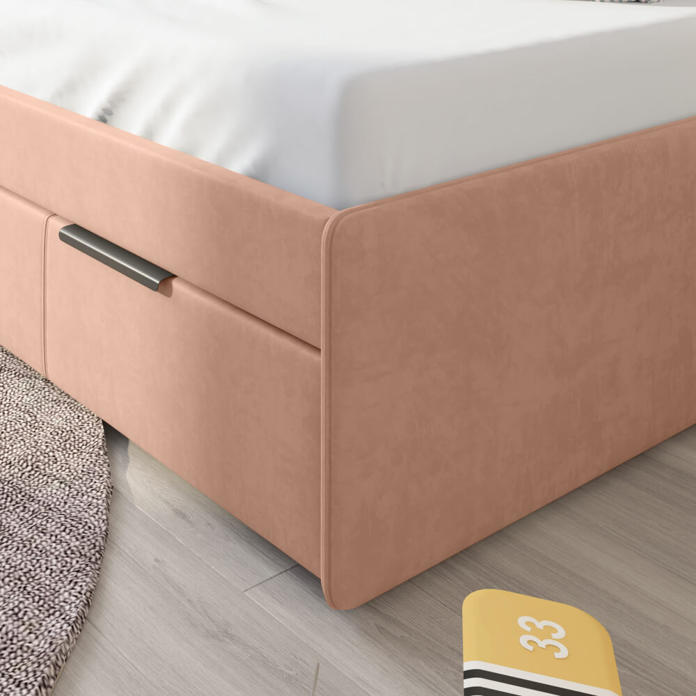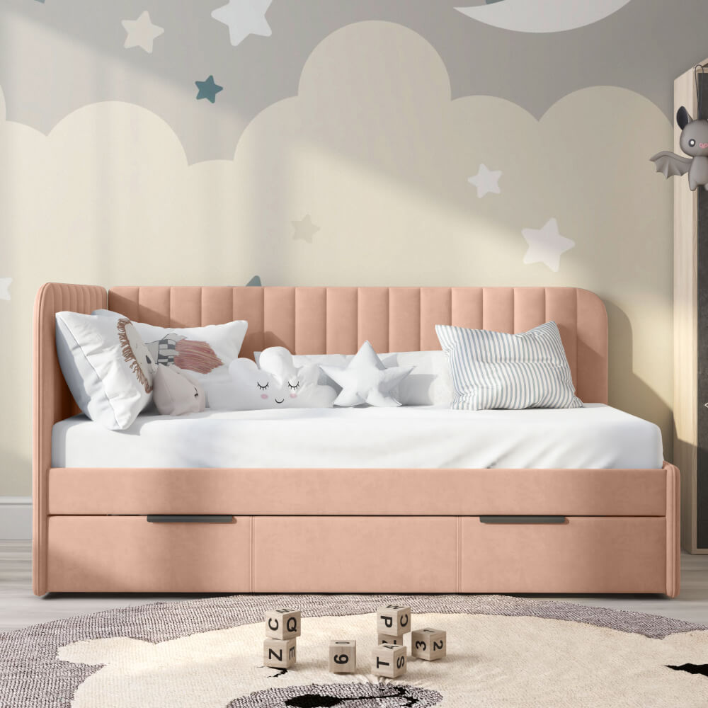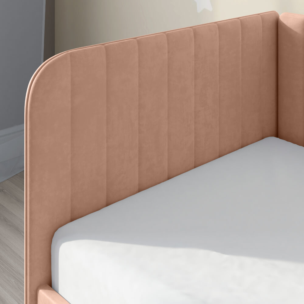 Детская кровать ELLA с вертикальной строчкой и выдвижным ящиком сочетает в себе функциональность, стиль, удобство и комфорт, делая ее отличным выбором для детской комнаты.