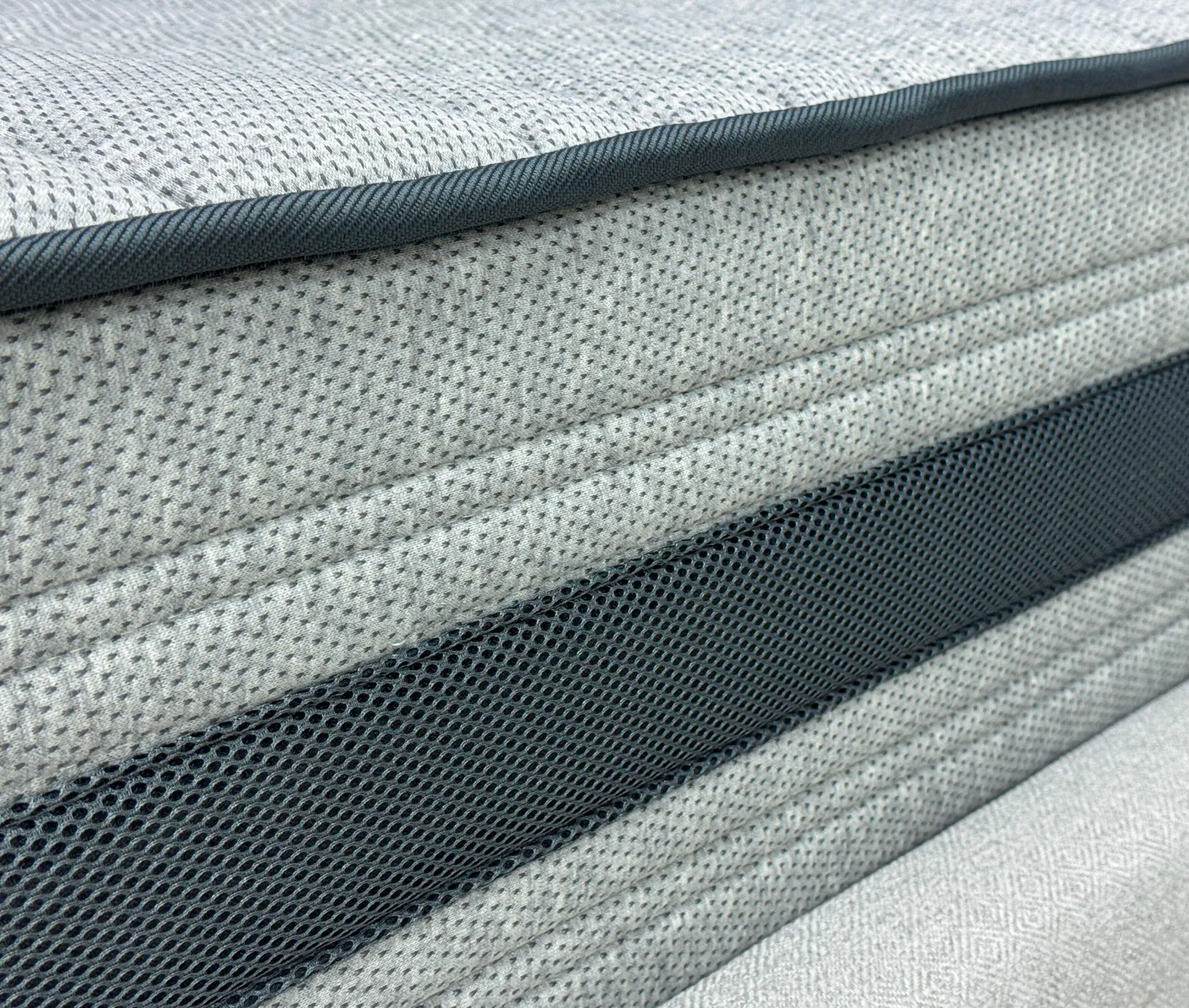 Трикотаж «PESCODY» - Премиальный меланжевый итальянский трикотаж с натуральными волокнами в трендовом приятном сером цвете. Благодаря своей расцветке ткань смотрится стильно и более неприхотлива к незначительным загрязнениям. Натуральные смесовые нити в составе способствуют более эффективному тепло обмену и обладают высокой гигроскопичностью, что обеспечивает комфортный микроклимат спального места