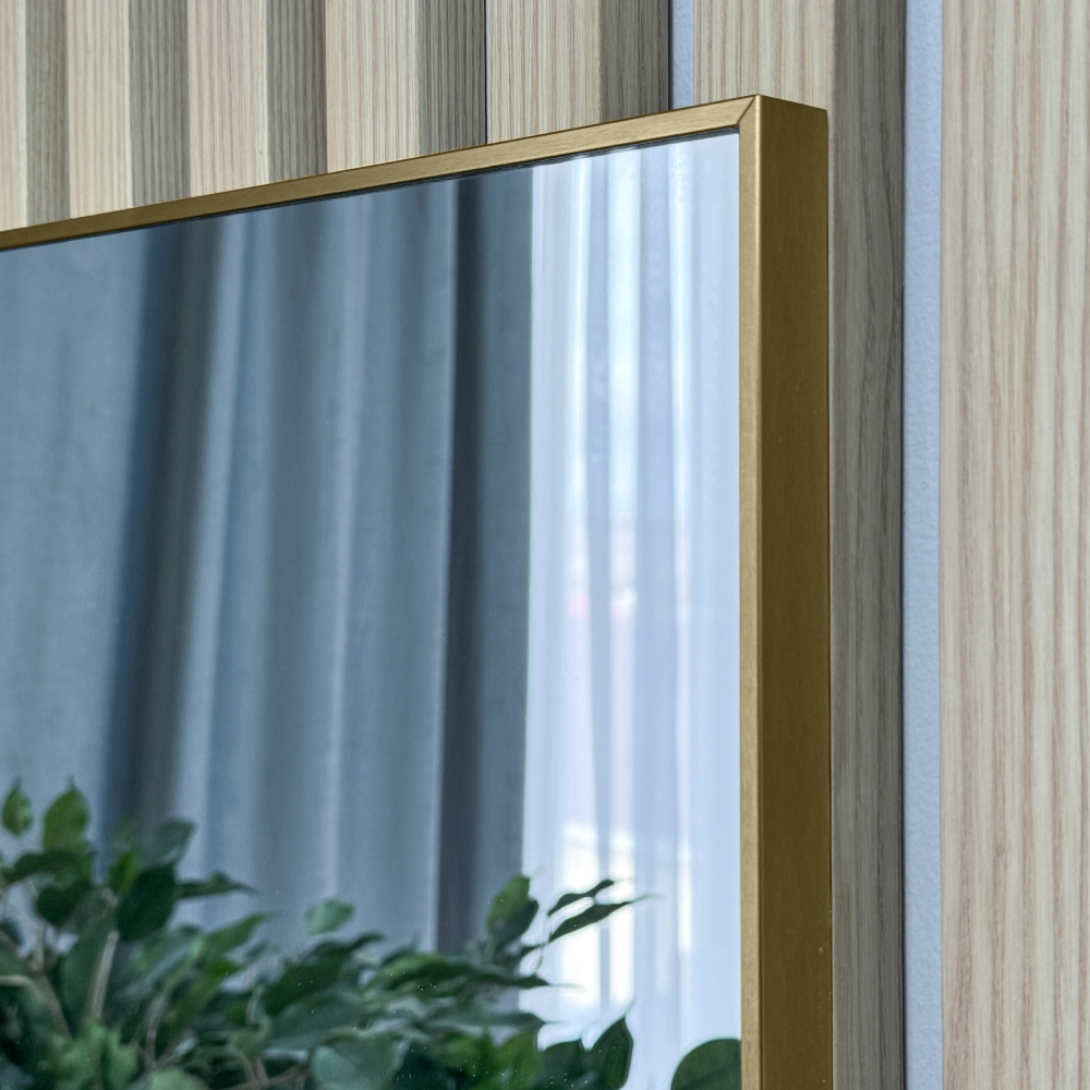 Настенное зеркало «PLAZA» – это идеальный выбор для вашего дома. Благодаря элегантной алюминиевой раме, изготовленной из высококачественного анодированного профиля, зеркало станет стильным  акцентом в вашем интерьере.