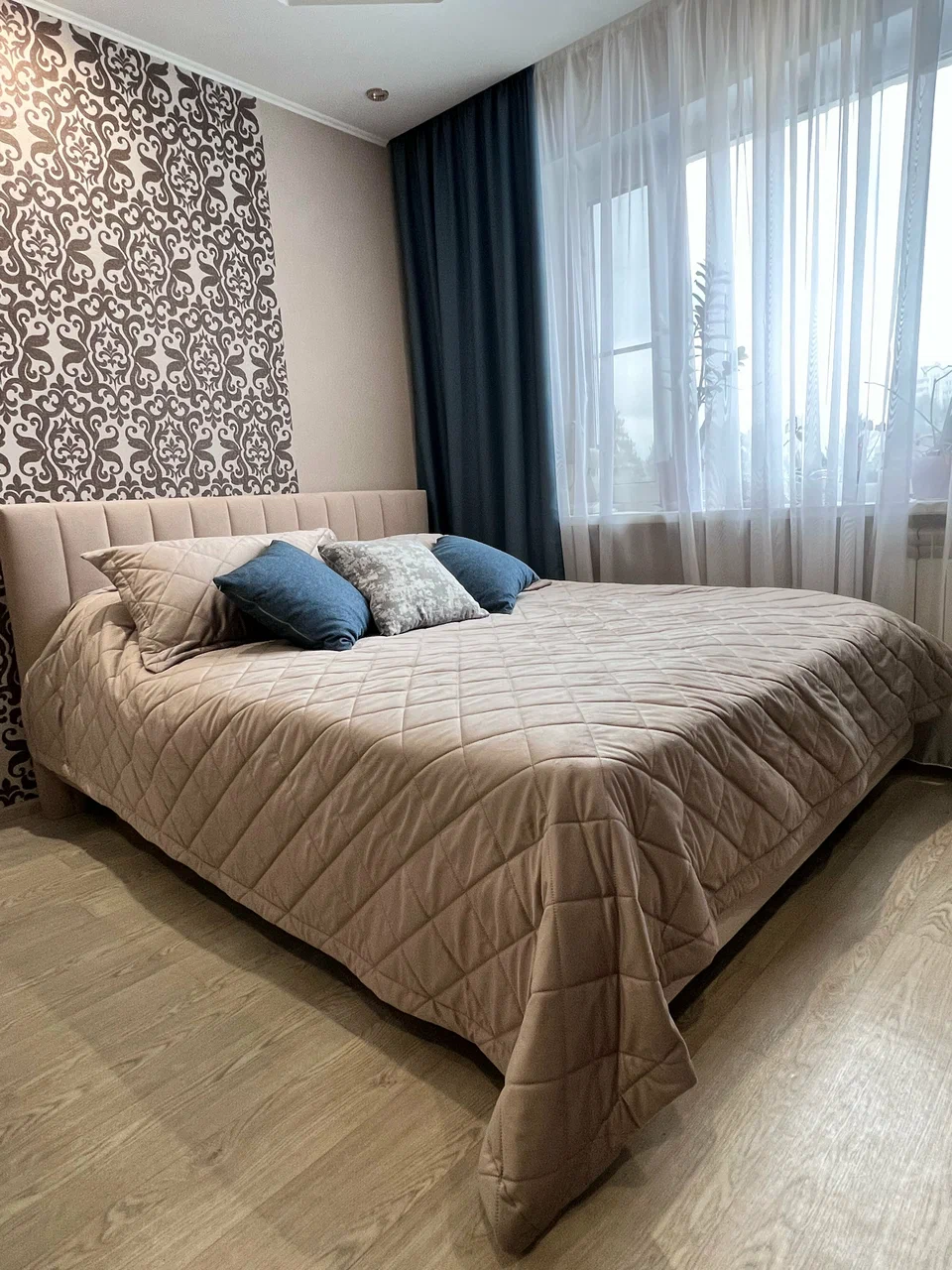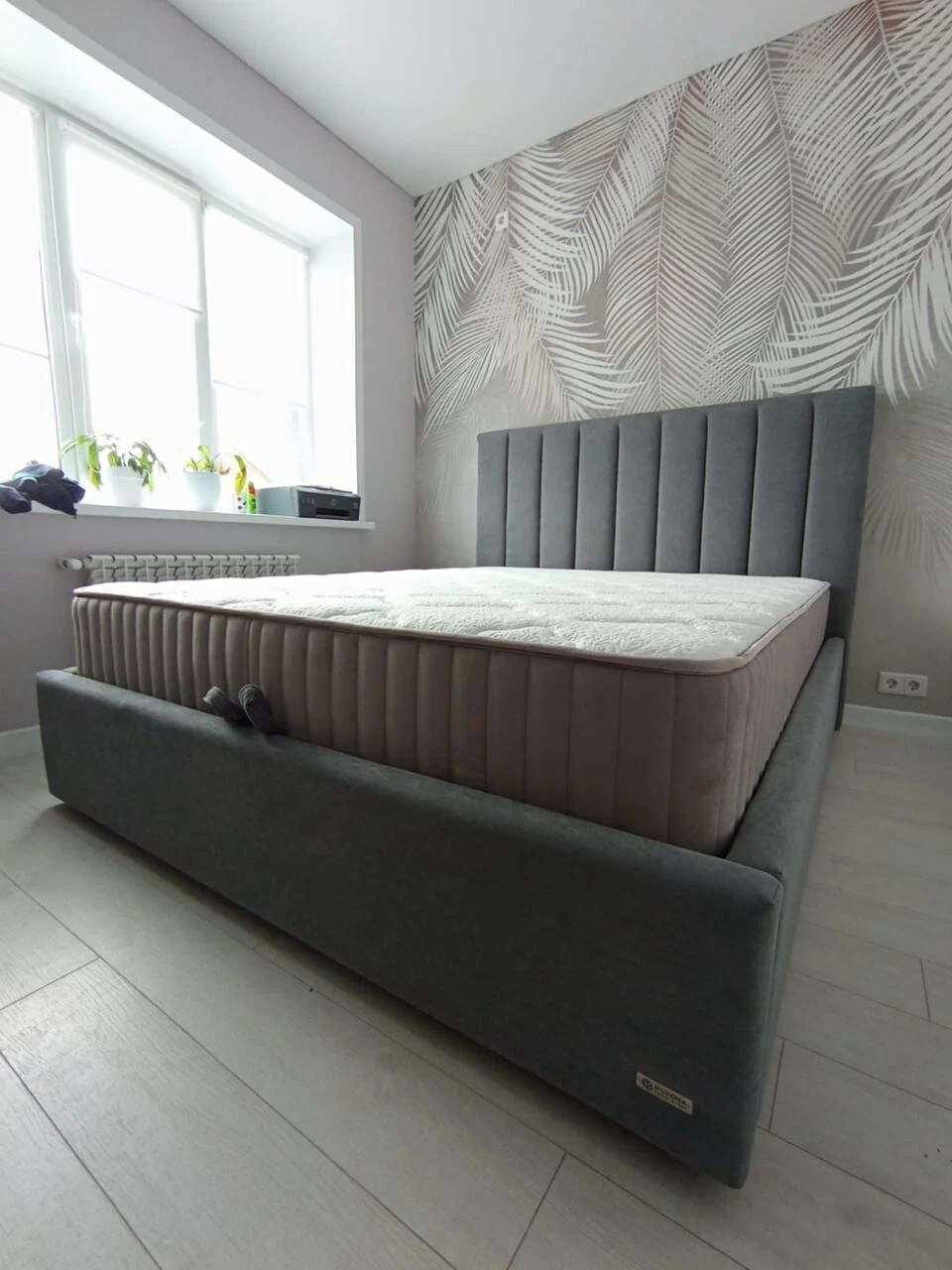 Выбрали кровать Линда. Так понравился дизайн. Хотя рисунок такой простой, но в сочетании с тканью обивки получается объемным. Кровать отлично подошла в нашу спальню, переживала что будет выглядеть громоздко. Но у нас солнечная сторона и в светлой комнате она смотрится совсем по-другому, чем в магазине.